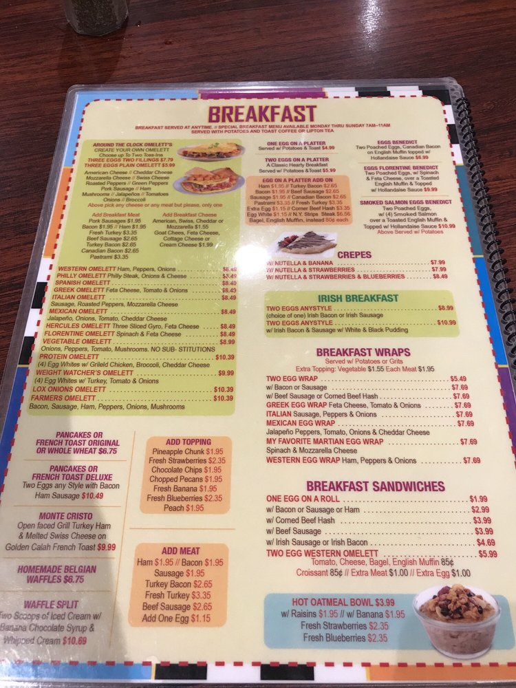 Introducing the menu at Splendid Diner, a casual and classy spot in New Rochelle, NY, offering a variety of options including wraps, breakfast items, and sandwiches. The menu boasts many vegetarian choices and accommodates various dietary needs. Customers rave about the generous servings and flavorful dishes. From Western Omelets to Greek Omelets and even Hercules Omelets, the breakfast options cater to a range of tastes. The fried calamari, fried shrimp, and spinach pie appetizers are also standout choices. With friendly and attentive waitstaff, Splendid Diner provides a welcoming atmosphere for groups of all sizes. Whether craving a classic breakfast, a hearty lunch, or a satisfying dinner, this diner delivers on taste and value. Overall, Splendid Diner lives up to its name, serving up delicious dishes at great prices with exceptional service.