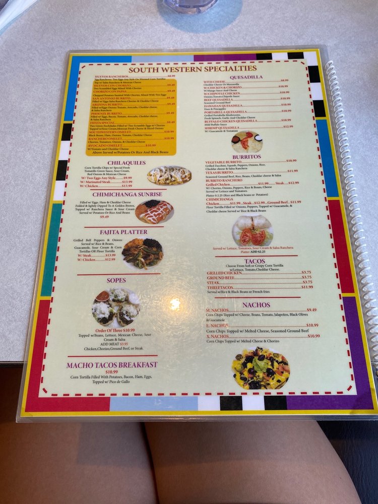 Filled with eggs, onions, tomato, peppers, cheddr cheese, and salsa ranchera.